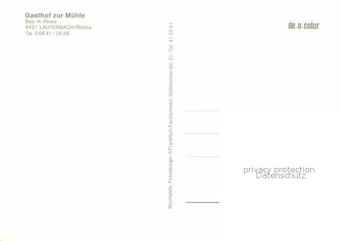 72915969 Rimlos Gasthaus zur Muehle Lauterbach postalisch nicht gelaufen Erhaltung siehe scans [LiesaD40] KatCode: 11110006535011
