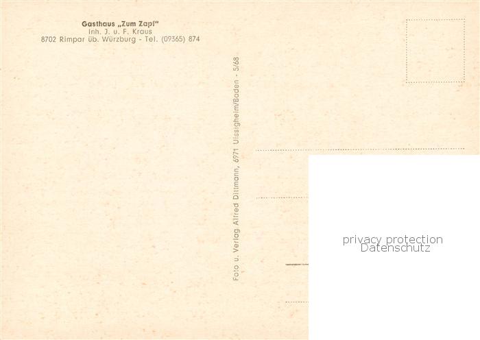 73854498 Rimpar Gasthaus Zum Zapf Panorama Gedenkstaette Gastraeume postalisch nicht gelaufen Erhaltung siehe scans [WerneD78] KatCode: 11110009679180