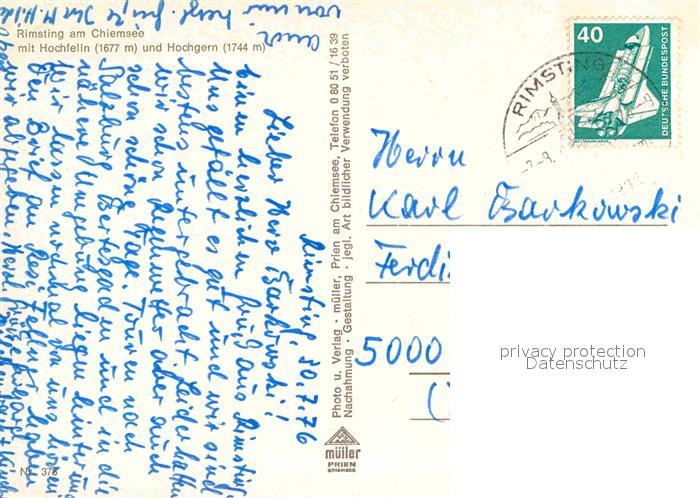72740872 alte Postkarte Rimsting am Chiemsee mit Hochfelln postalisch gelaufen Erhaltung siehe scans [LiesaD40] KatCode: 11110009187168