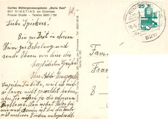 73915230 alte Postkarte Rimsting Caritas Muettergenesungsheim Maria Rast postalisch gelaufen Erhaltung siehe scans [FriedD77] KatCode: 11110009187168