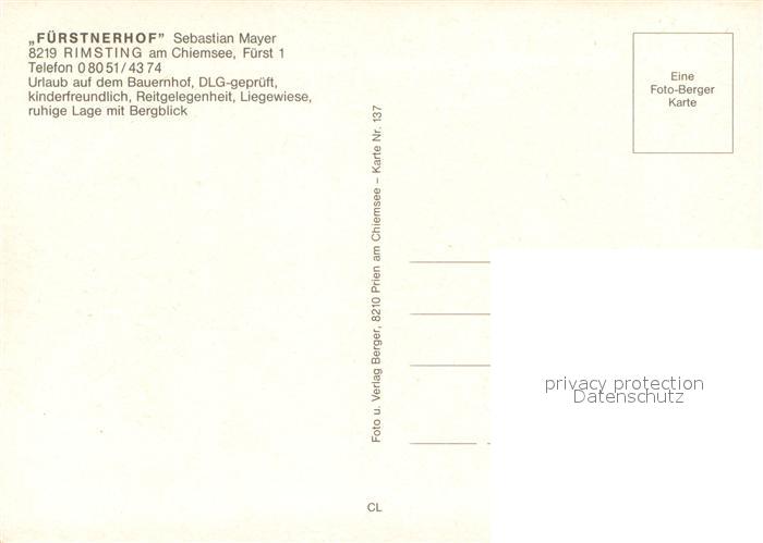 73641179 Rimsting Fuerstnerhof postalisch nicht gelaufen Erhaltung siehe scans [WerneD78] KatCode: 11110009187168