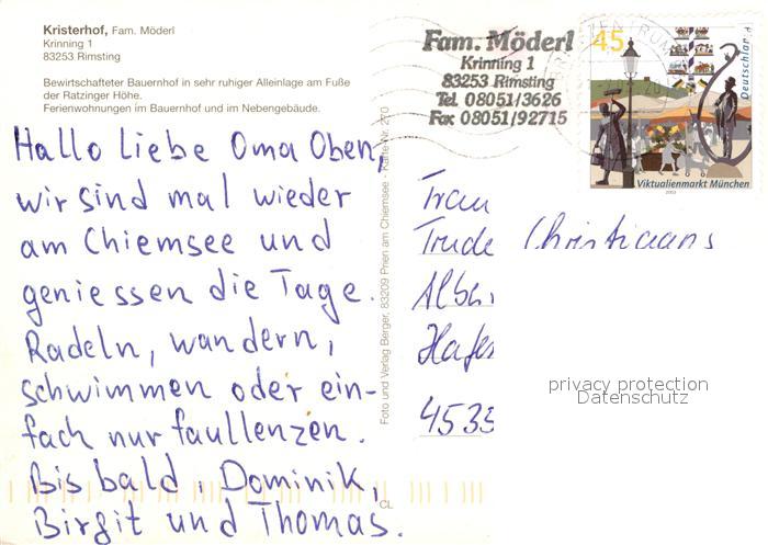 72961450 alte Postkarte Rimsting Kristerhof postalisch gelaufen Erhaltung siehe scans [PaolaD17] KatCode: 11110009187168
