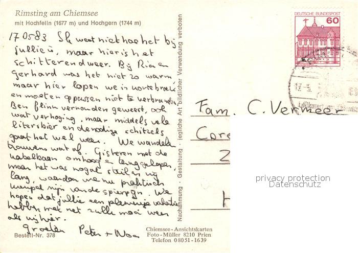 73306617 alte Postkarte Rimsting mit Hochfelln und Hochgern postalisch gelaufen Erhaltung siehe scans [WerneD78] KatCode: 11110009187168