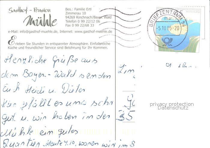 alte Postkarte Rinchnach Gasthof Pension Muehle im Bayerischen Wald postalisch gelaufen Erhaltung siehe scans