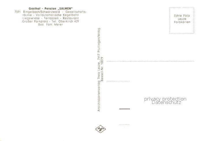 73644260 Ringelbach Oberkirch Gasthof Pension Salmen im Schwarzwald postalisch nicht gelaufen Erhaltung siehe scans [FriedD77] KatCode: 11110008317089