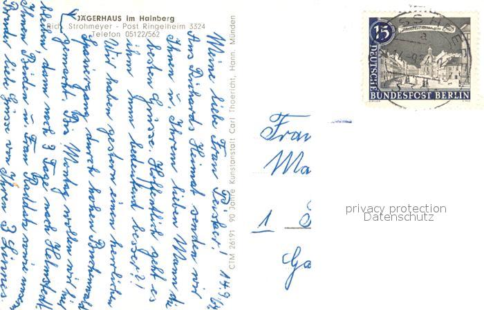 73653401 alte Postkarte Ringelheim Jaegerhaus im Hainberg Gastzimmer Felsformation postalisch gelaufen Erhaltung siehe scans [WerneD78] KatCode: 11110003102000