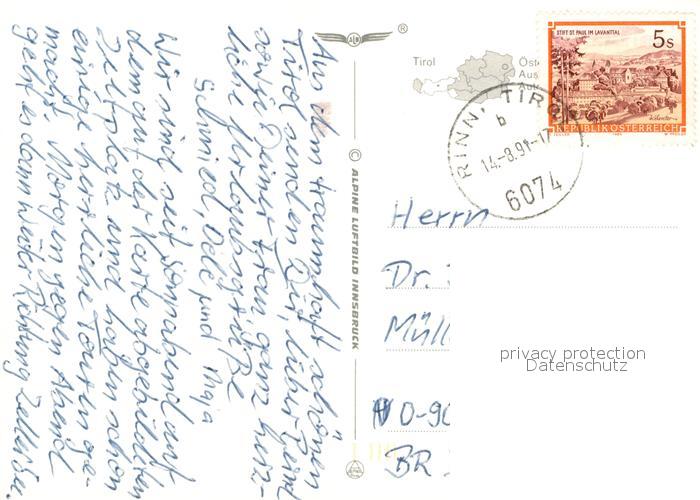 73481210 alte Postkarte Rinn Fliegeraufnahme Campingplatz Judenstein postalisch gelaufen Erhaltung siehe scans [KathaD81] KatCode: 11390332070345