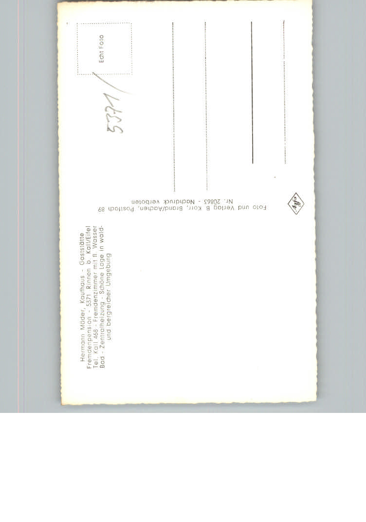 31138296 Rinnen Eifel Gasthaus – Kaufhaus Maeder postalisch nicht gelaufen KatCode: 11110005366024