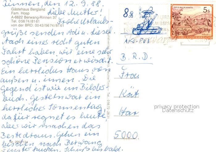 73363331 alte Postkarte Rinnen Tirol Gaestehaus Bergland Alpen postalisch gelaufen Erhaltung siehe scans [FriedD77] KatCode: 11390331070802