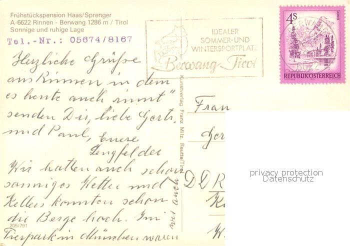 73702868 alte Postkarte Rinnen Tirol Gaestehaus Pension Almrausch Panorama Alpen postalisch gelaufen Erhaltung siehe scans [FriedD77] KatCode: 11390331070802