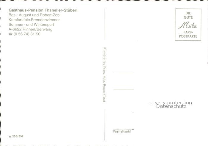 72022927 Rinnen Tirol Gasthof Pension Thaneller Stueberl postalisch nicht gelaufen Erhaltung siehe scans KatCode: 11390331070802