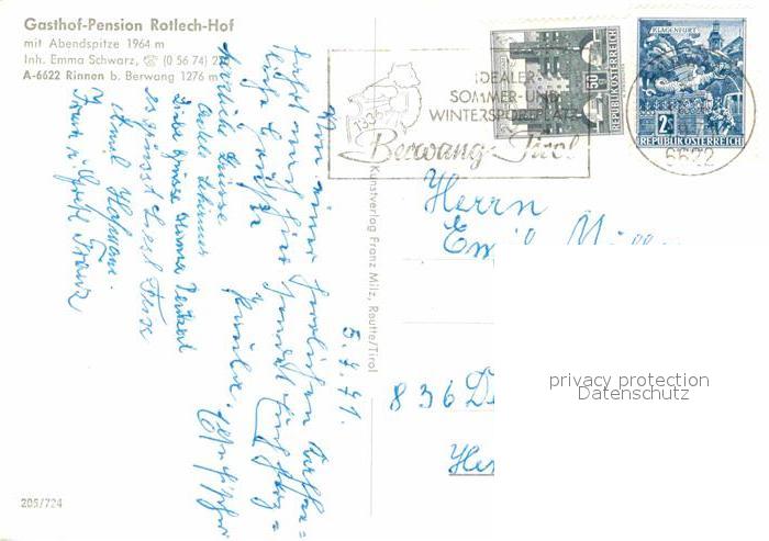 72671459 alte Postkarte Rinnen Tirol Gasthof Rotlech Hof postalisch gelaufen Erhaltung siehe scans [WerneD78] KatCode: 11390331070802