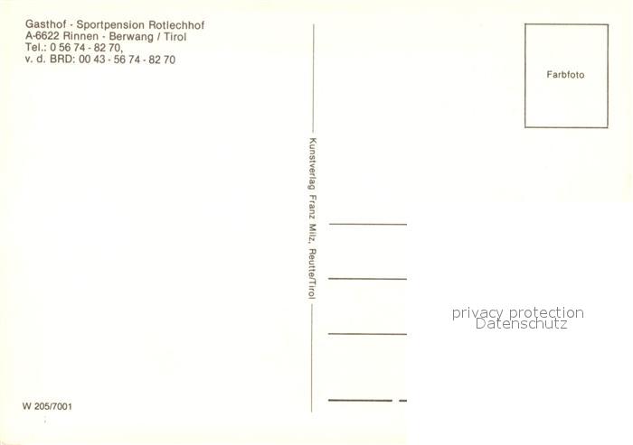 73493077 Rinnen Tirol Gasthof Rotlech Hof postalisch nicht gelaufen Erhaltung siehe scans [WerneD78] KatCode: 11390331070802