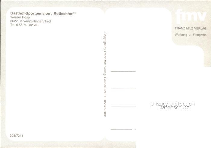 72444444 Rinnen Tirol Gesamtansicht mit Alpenpanorama Gasthof Sportpension Rotlechhof postalisch nicht gelaufen Erhaltung siehe scans KatCode: 11390331070802