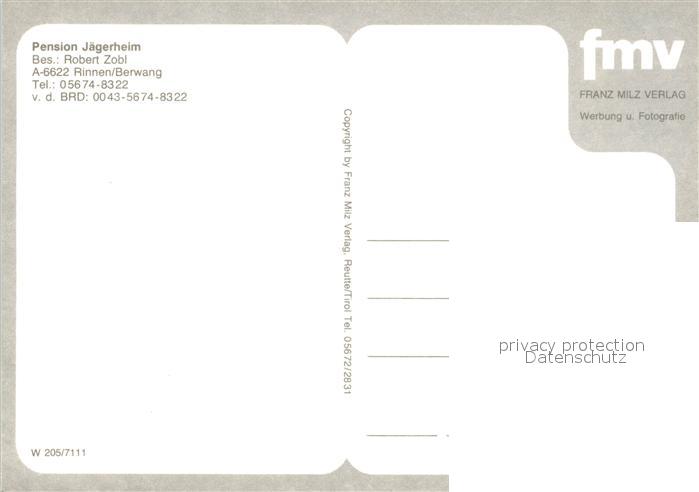 13221087 Rinnen Tirol Pension Jaegerheim postalisch nicht gelaufen Erhaltung siehe scans [LiesaD40] KatCode: 11390331070802