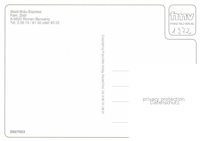 72898939 Rinnen Tirol Stadl Braeu Express postalisch nicht gelaufen Erhaltung siehe scans [FriedD77] KatCode: 11390331070802