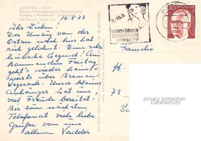 72947427 alte Postkarte Rinteln Doktor See Fliegeraufnahme postalisch gelaufen Erhaltung siehe scans [WerneD78] KatCode: 11110003257031