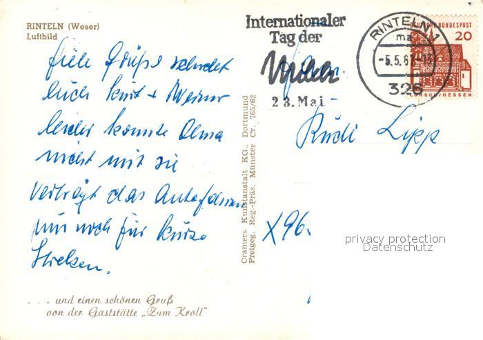73121187 alte Postkarte Rinteln Fliegeraufnahme postalisch gelaufen Erhaltung siehe scans [LiesaD40] KatCode: 11110003257031