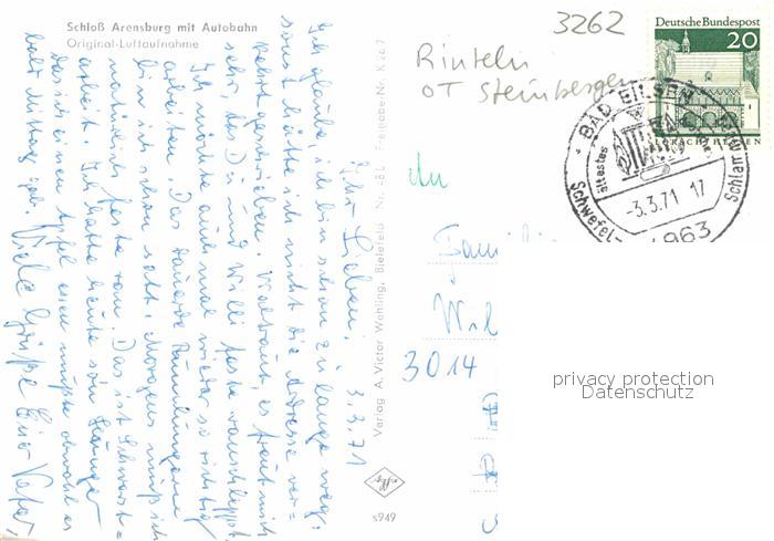 72919189 alte Postkarte Rinteln Schloss Arensburg Fliegeraufnahme postalisch gelaufen Erhaltung siehe scans [WerneD78] KatCode: 11110003257031
