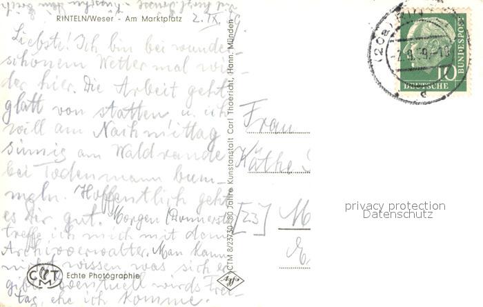 73740949 Rinteln Weser Niedersachsen Am Marktplatz postalisch gelaufen Erhaltung siehe scans [WerneD78] alte Postkarte Wern Katcode 11110003257031