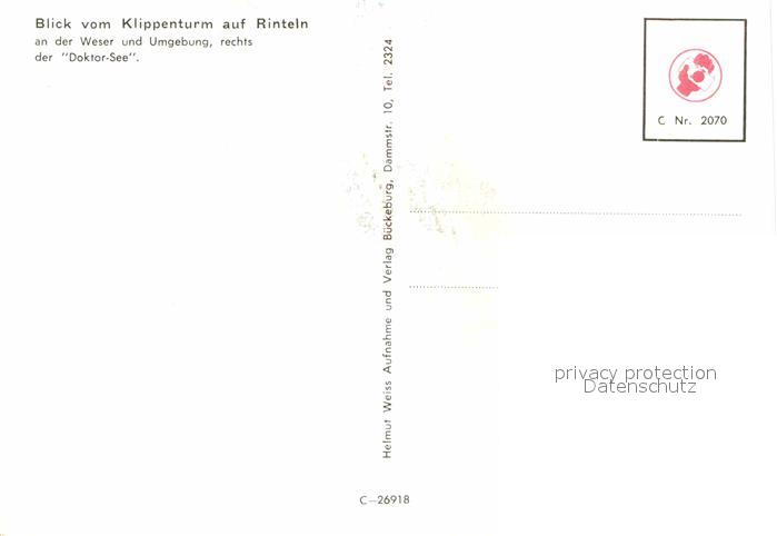 72692724 Rinteln Weser Niedersachsen Blick vom Klippenturm postalisch nicht gelaufen Erhaltung siehe scans [NatalD47] KatCode: 11110003257031