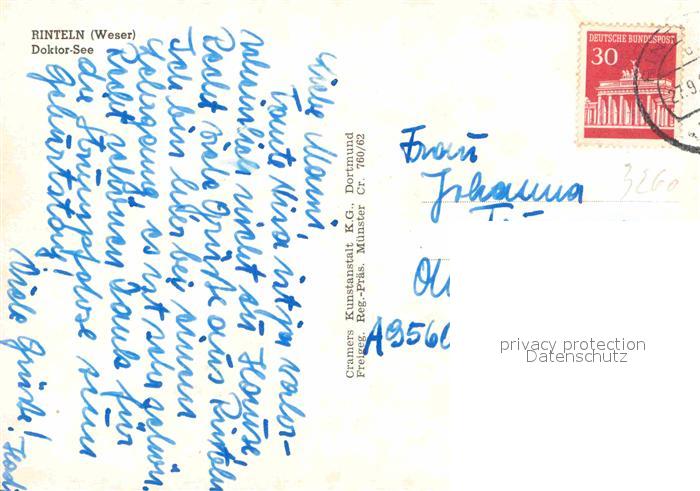 72853791 alte Postkarte Rinteln Weser Niedersachsen Doktor-See postalisch gelaufen Erhaltung siehe scans [NatalD47] KatCode: 11110003257031