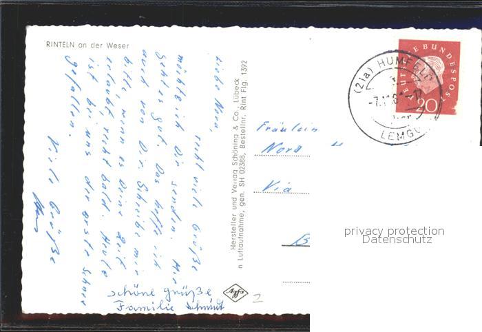 72149687 alte Postkarte Rinteln Weser Niedersachsen Fliegeraufnahme postalisch gelaufen Erhaltung siehe scans KatCode: 11110003257031