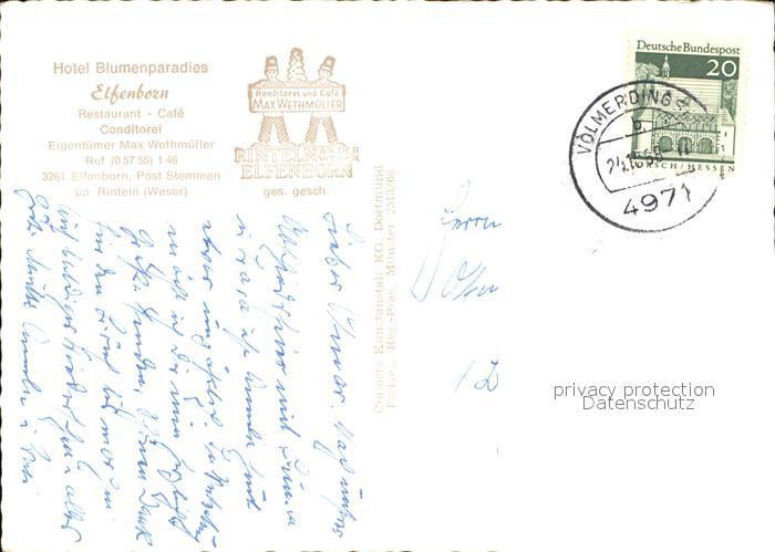 72530074 alte Postkarte Rinteln Weser Niedersachsen Hotel Blumenparadies postalisch gelaufen Erhaltung siehe scans KatCode: 11110003257031