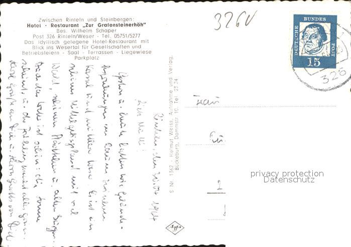 41588364 Rinteln Weser Niedersachsen Hotel Zur Grafensteinerhoeh postalisch gelaufen Erhaltung siehe scans Alte Ansichtskarte Postkarte alte Postkarte hz_W Katcode 11110003257031