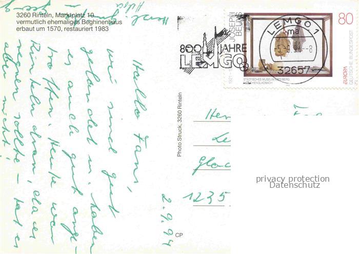 74019271 Rinteln Weser Niedersachsen Marktplatz 10 ehemaliges Beghinenhaus 16. Jhdt. Fachwerkhaeuser postalisch gelaufen Erhaltung siehe scans [FriedD77] alte Postkarte Frie Katcode 11110003257031