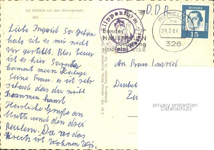72413632 alte Postkarte Rinteln Weser Niedersachsen Panorama postalisch gelaufen Erhaltung siehe scans KatCode: 11110003257031
