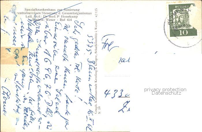 72433645 alte Postkarte Rinteln Weser Niedersachsen Sanatorium Honekamp Parkhof Speiseraum postalisch gelaufen Erhaltung siehe scans KatCode: 11110003257031