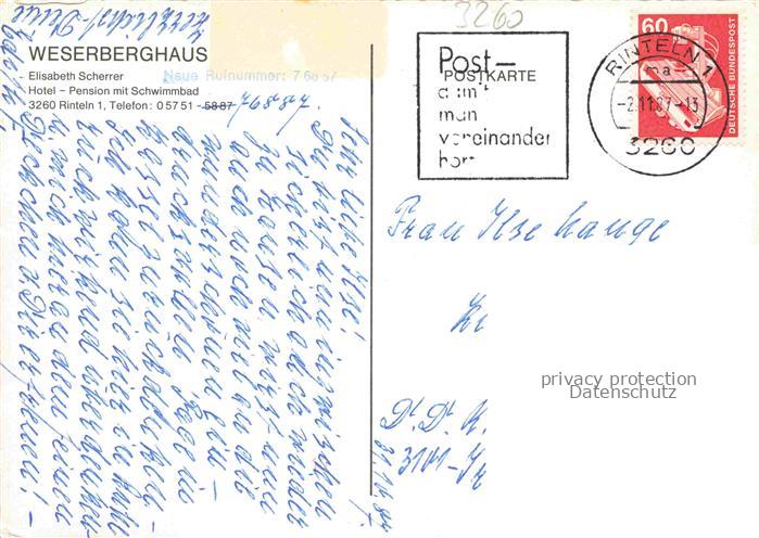 74084682 alte Postkarte Rinteln Weser Weserberghaus postalisch gelaufen Erhaltung siehe scans [WerneD78] KatCode: 11110003257031