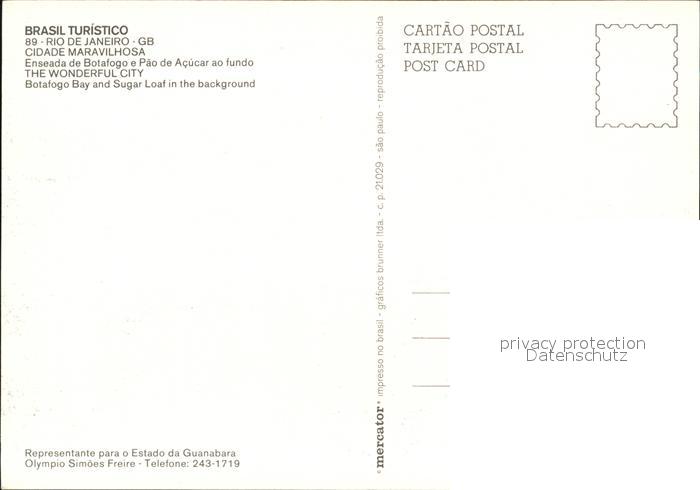 Rio de Janeiro Botafogo Bay and Sugar Loaf in the background postalisch nicht gelaufen Erhaltung siehe scans