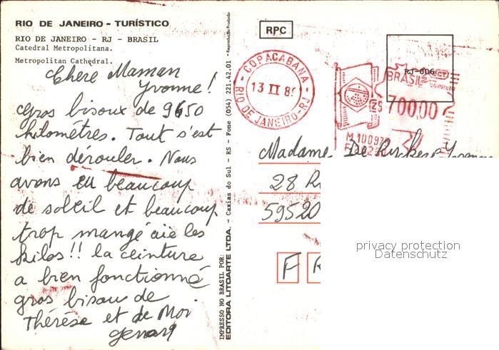 alte Postkarte Rio de Janeiro Catedral Metropolitana postalisch gelaufen Erhaltung siehe scans