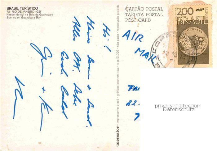 old postcard Rio de Janeiro Fliegeraufnahme Sunrise on Guanabara Bay postalisch gelaufen Erhaltung siehe scans [LiesaD40]