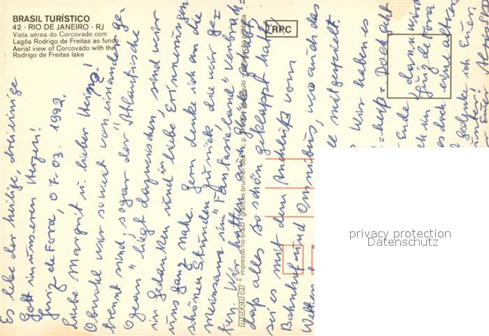 Rio de Janeiro Vista aerea do Corcovado com Lagoa Rodrigo de Freitas ao fundo postalisch nicht gelaufen Erhaltung siehe scans [WerneD78]