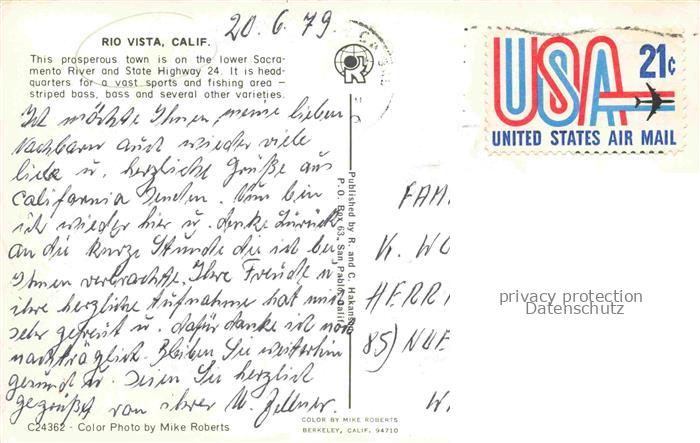 74063225 old postcard Rio Vista California USA Fliegeraufnahme postalisch gelaufen Erhaltung siehe scans [WerneD78] KatCode: 14140050000000