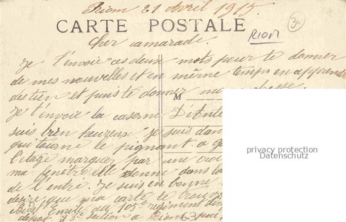 14105806 RIOM 63 Puy-de-Dome Entrée de la Caserne d’Anterroche postalisch nicht gelaufen Erhaltung siehe scans [FriedD77] Frie Katcode 11170063463300