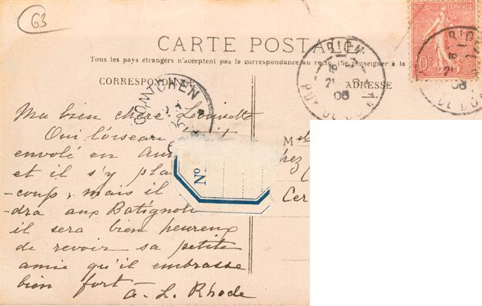 Riom 63 Puy-de-Dome Je vous envoie ces Fleurs