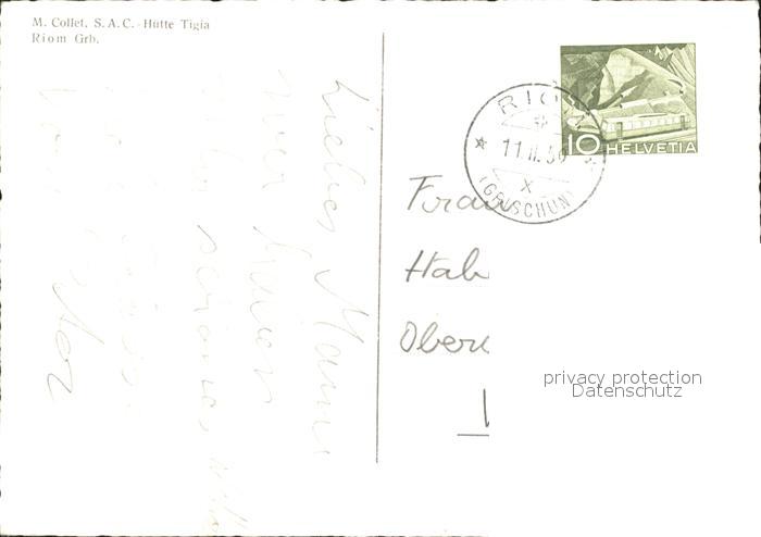 11651364 alte Postkarte Riom Albula H?tte Tigia postalisch gelaufen Erhaltung siehe scans KatCode: 11470100305960