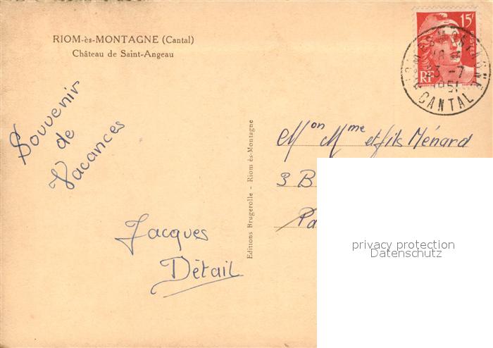 13582587 Riom-es-Montagnes Chateau de Saint Angeau KatCode 11170015215162