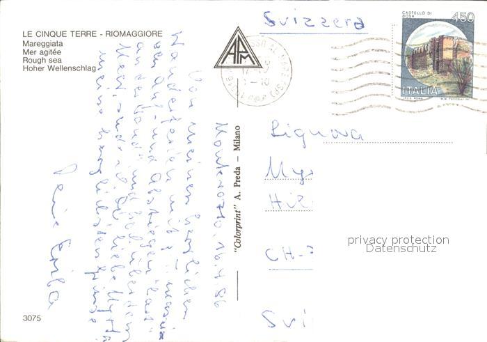 old postcard Riomaggiore Le Cinque Terre Mareggiata Rauhe See Brandung Kueste postalisch gelaufen Erhaltung siehe scans