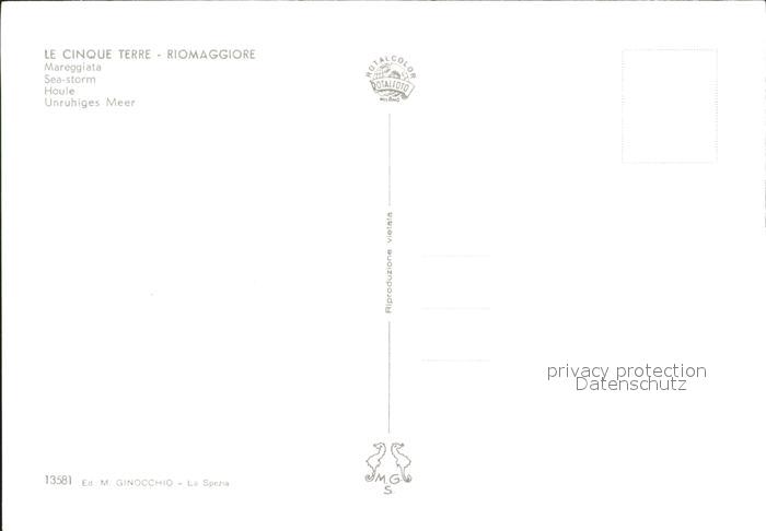 Riomaggiore Le Cinque Terre Marreggiata Brandung postalisch nicht gelaufen Erhaltung siehe scans