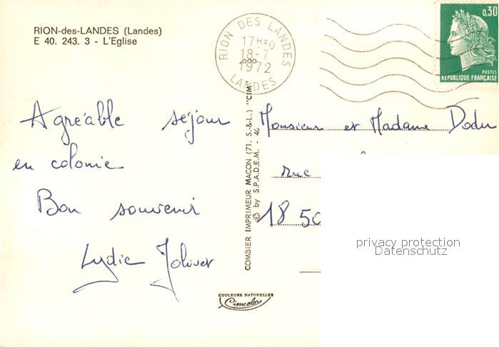 13580940 carte postale Rion-des-Landes Eglise postalisch gelaufen Erhaltung siehe scans [WerneD78] KatCode: 11170040140243