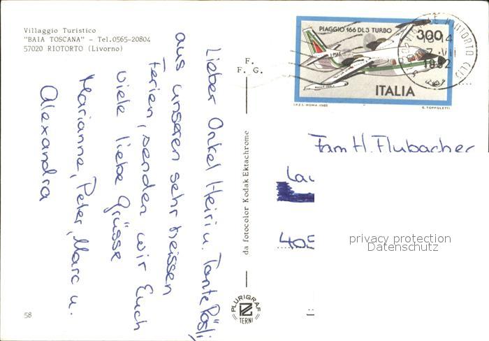 old postcard Riotorto Livorno Baia Toscana postalisch gelaufen Erhaltung siehe scans
