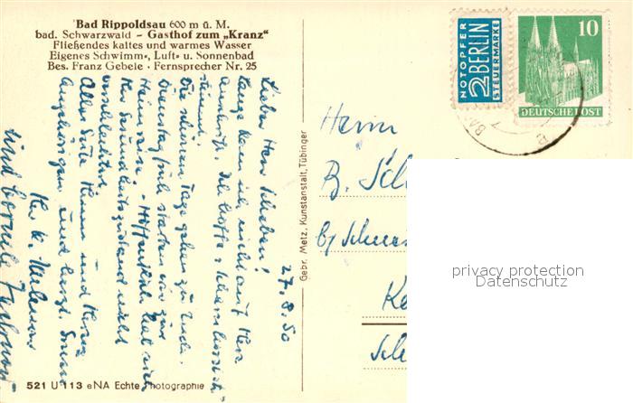 43057581 alte Postkarte Rippoldsau Schwarzwald Bad Gasthaus Kranz postalisch gelaufen Erhaltung siehe scans [KathaD81] KatCode: 11110008237075