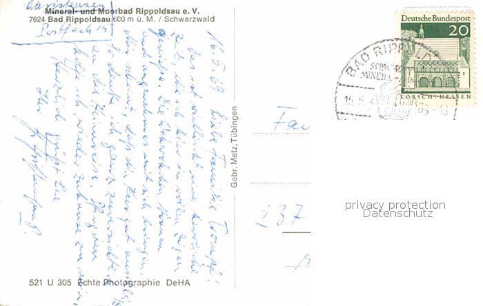 72812817 alte Postkarte Rippoldsau Schwarzwald Bad Mineral-und Moorbad postalisch gelaufen Erhaltung siehe scans [AndreD76] KatCode: 11110008237075