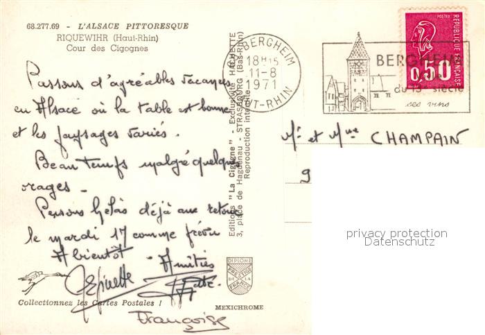 carte postale Riquewihr Haut Rhin Cour des Cigognes postalisch gelaufen Erhaltung siehe scans [FriedD77]