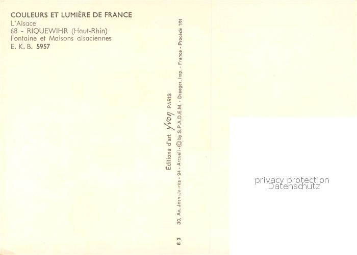 Riquewihr Haut Rhin Fontaine Cheval Maison alsaciennes Collection Couleurs et Lumière de France postalisch nicht gelaufen Erhaltung siehe scans [FriedD77]